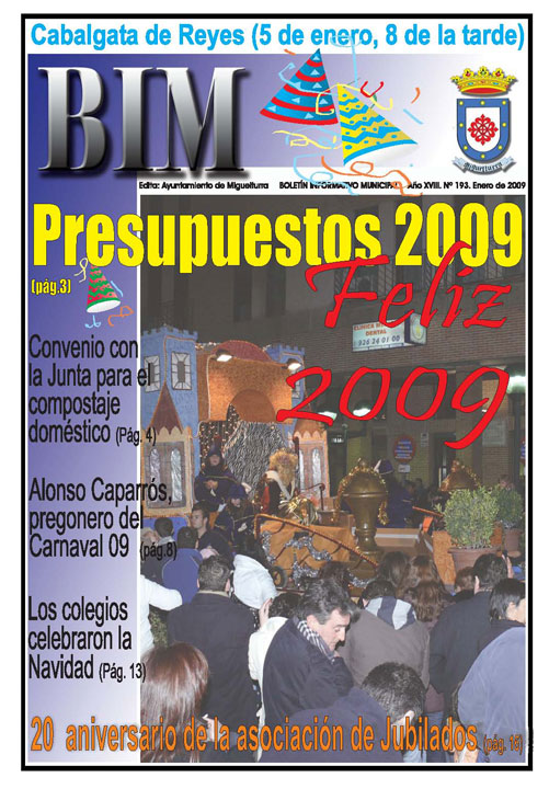 Un total de 38 números en formato PDF están puestos en el portal www.miguelturra.es, desde diciembre de 2005 hasta el de este mes, dentro de la zona denominada "Medios" para ser consultadas por miles y miles de personas sin ningún tipo de fecha de caducidad, para que de este modo se puedan leer con la misma facilidad tanto los de hace meses como el más actual, en este caso el de enero de 2009 donde se hace un balance de las fiestas navideñas, un gran artículo en el que se describen las líneas económicas del Ayuntamiento y sus previsiones para 2009, fotografías de los actos navideños que han hecho los colegios de la localidad, información sobre la Asamblea de la Asociación de Jubilados y Pensionistas y gran número de artículos que han podido ya leer en prensa provincial o en la web durante estos días, noticias elaboradas principalmente por el Área de Comunicación Municipal, pero compiladas en formato digital para cualquier persona que desee tenerlo a través de Internet y de forma completamente gratuita.