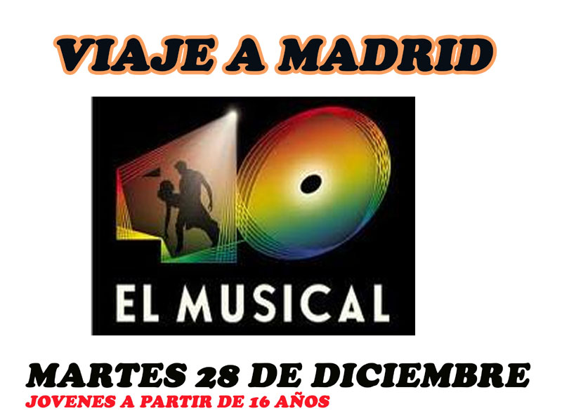 El Centro Joven de Miguelturra organiza un viaje a Madrid para ver el musical de los 40 principales. El viaje se realiza el próximo día 28 de Diciembre para jóvenes mayores de 16 años.