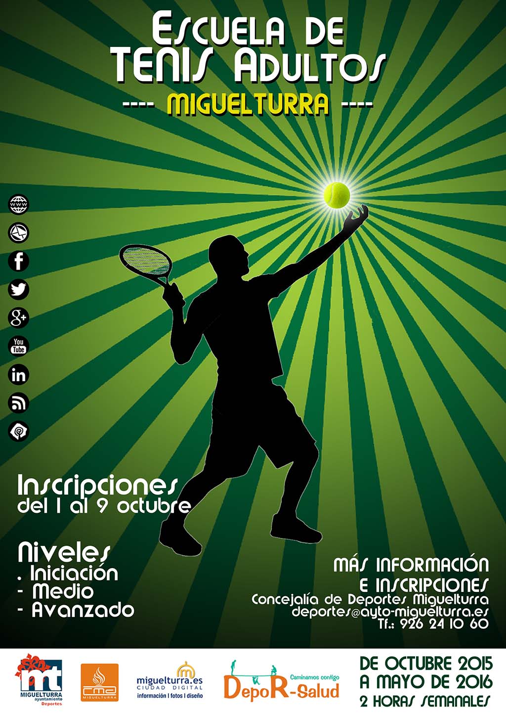 La Concejalía de Deportes del Ayuntamiento de Miguelturra informa sobre el comienzo del plazo de inscripciones para participar en la "Escuela de Tenis de Adultos de Miguelturra", que se pondrá en marcha de octubre a mayo del próximo año 2016, en colaboración con el portal web www.miguelturra.es.
