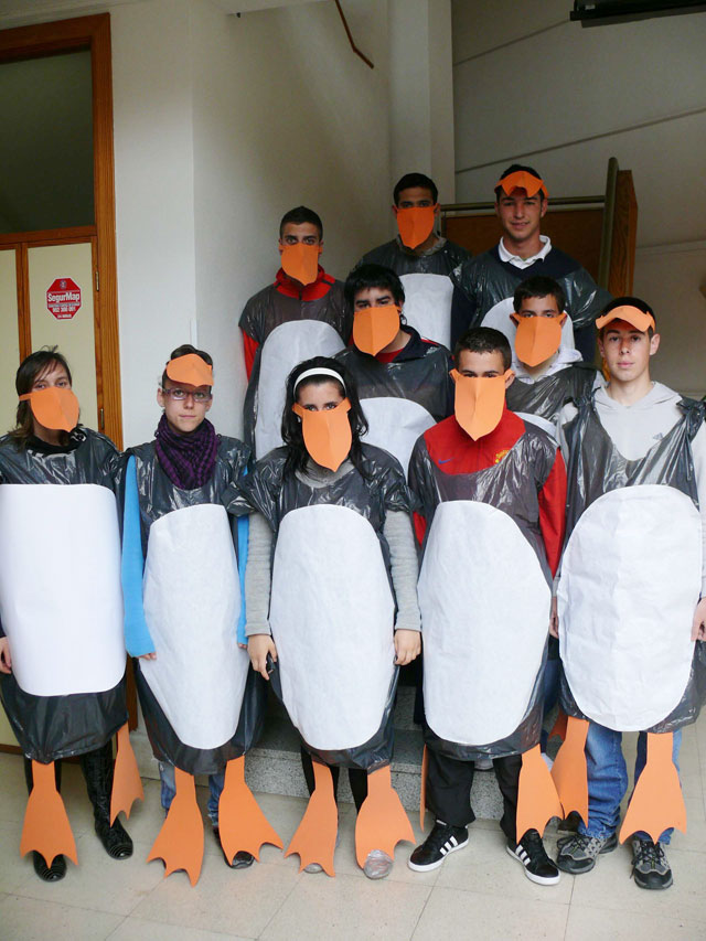 En la fotos los vemos, junto a una de responsable del curso, María Jesús Sánchez, vestidos y vestidas con trajes confeccionados por ellos/ellas mismos/as con materiales de reciclaje como bolsas y cartulinas.