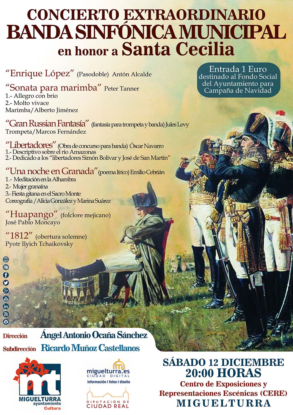 Desde la Concejalía de Cultura y la Escuela de Música de Miguelturra se invita a toda la ciudadanía a asistir y disfrutar de esta actividad musical que además tiene entrada benéfica y que permitirá conmemorar esta Festividad.