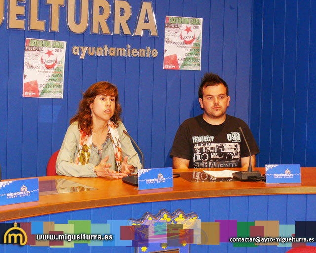 La concejala de Cultura y Festejos en funciones del Ayuntamiento de Miguelturra, Esmeralda Muñoz, acompañada por José Luis Rodríguez, presidente de la asociación local de ayuda al pueblo saharaui "SAYMI", presentaba en la mañana del lunes el Festival Benéfico "Rockferendum Sahara 2011".
