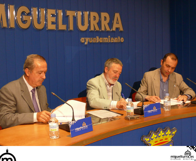 El salón de Plenos del Ayuntamiento de Miguelturra acogía la firma de un convenio de I+D entre el Ayuntamiento de la localidad, la Universidad de Castilla La Mancha y la Sociedad Cooperativa "Tierra de Calatrava" de la localidad.