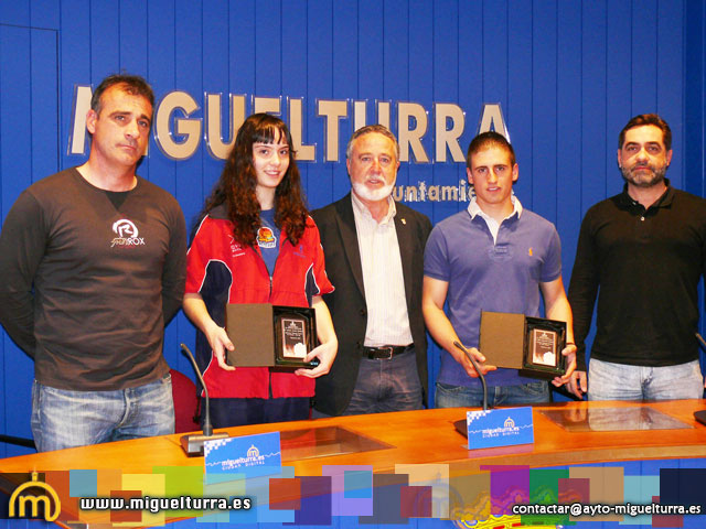 El alcalde de Miguelturra, Román Rivero, acompañado por el concejal de Deportes del Consistorio, Manuel Viso, realizaban una recepción a los deportistas: Andrea Arenas Sánchez y a Xabier Juanicorena Fernández, para reconocer los logros obtenidos por éstos en los últimos meses.