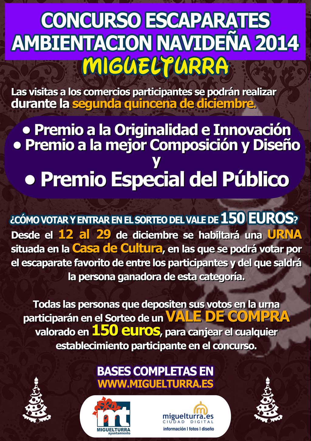El Ayuntamiento de Miguelturra, convoca para este año 2014 un Concurso de Escaparates, con motivo de la celebración de las fiestas navideñas, el cual se regirá de acuerdo a las siguientes bases: