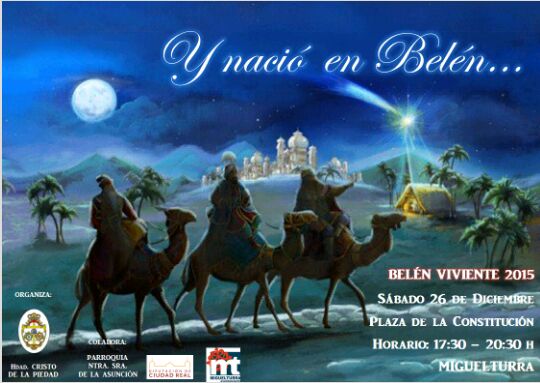 Dentro de la Programación de Navidad del Ayuntamiento de Miguelturra, que va desde el 3 de diciembre al 9 de enero de 2016, se desarrollará el sábado 26 de diciembre el Belén Viviente que organizan la Hermandad del Santísimo Cristo de la Piedad de Miguelturra en colaboración con la Parroquia Nuestra Señora de la Asunción, Diputación Provincial de Ciudad Real yAyuntamiento de Miguelturra.