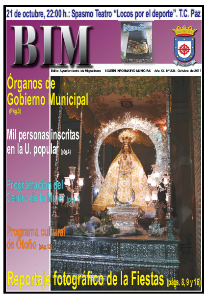 Las imágenes de las ferias y fiestas de 2011 se destacan en este número 226 además de las secciones habituales de este boletín, además del comienzo de todo tipo de cursos y detalle de la programación del Área de Cultura para estos próximos meses.