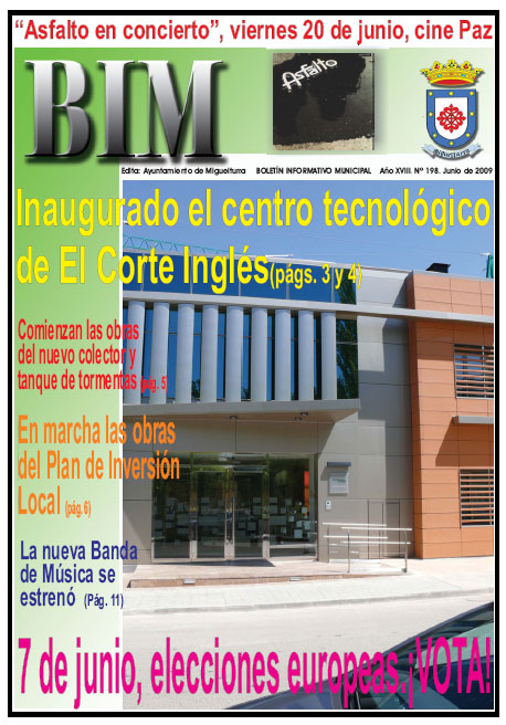 Ya está distribuyéndose entre la gran mayoría de las viviendas de Miguelturra el Boletín Informativo Municipal del mes de junio de 2009, de forma física, y desde hoy martes 2 de junio de forma virtual, en PDF, en este portal web municipal www.miguelturra.es, como es tradicional desde hace más de tres años, boletín confeccionado por el Área de Cultura del Ayuntamiento de Miguelturra.
