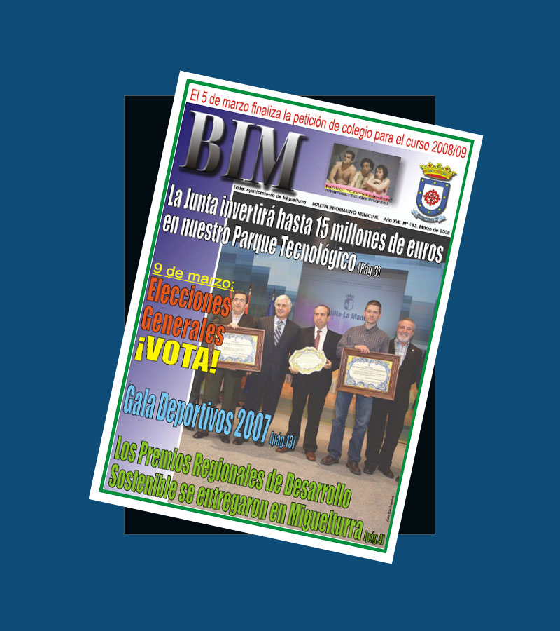 Desde el pasado 28 de febrero de 2008 ya está disponible el último número del Boletín Informativo Municipal, más conocido como BIM, en su formato digital PDF en www.miguelturra.es.