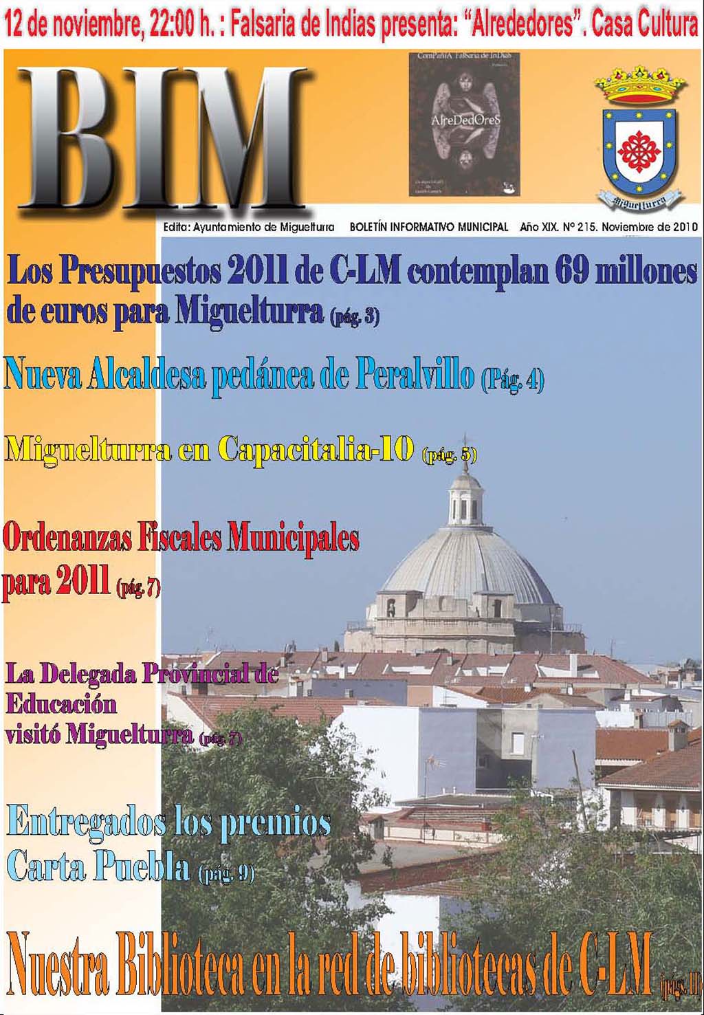 El número 215 del Boletín Informativo Municipal (BIM), que corresponde a este mes de noviembre de 2010, ya se puede consultar en formato digital en www.miguelturra.es cómoda y fácilmente a través de internet, boletín que en breve se distribuye en los buzones de los domicilios de Miguelturra.