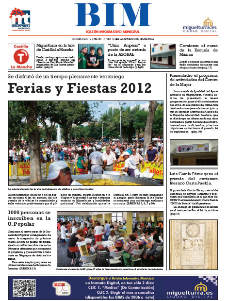 El Boletín Informativo Municipal de Octubre de 2012 ya se puede consultar en www.miguelturra.es.