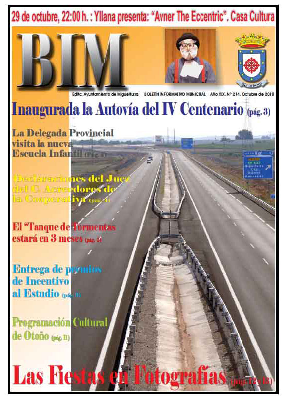 El número 214 del Boletín Informativo Municipal (BIM), que corresponde a este mes de Octubre, ya está siendo distribuido a los miguelturreños proporcionando así a todos los vecinos de Miguelturra toda la información de actualidad que genera el municipio.