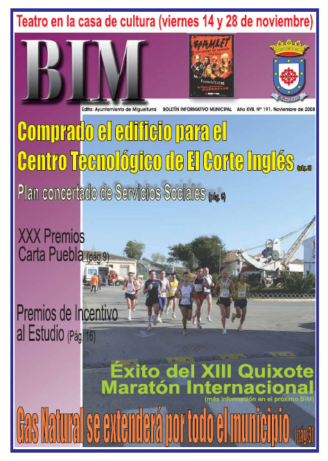 Desde estas fechas ya se está distribuyendo el Boletín Informativo Municipal del mes de noviembre, más conocido como BIM, en los hogares de la ciudadanía de Miguelturra, por un lado, y de forma virtual y a través de Internet en este portal web www.miguelturra.es, en formato PDF.