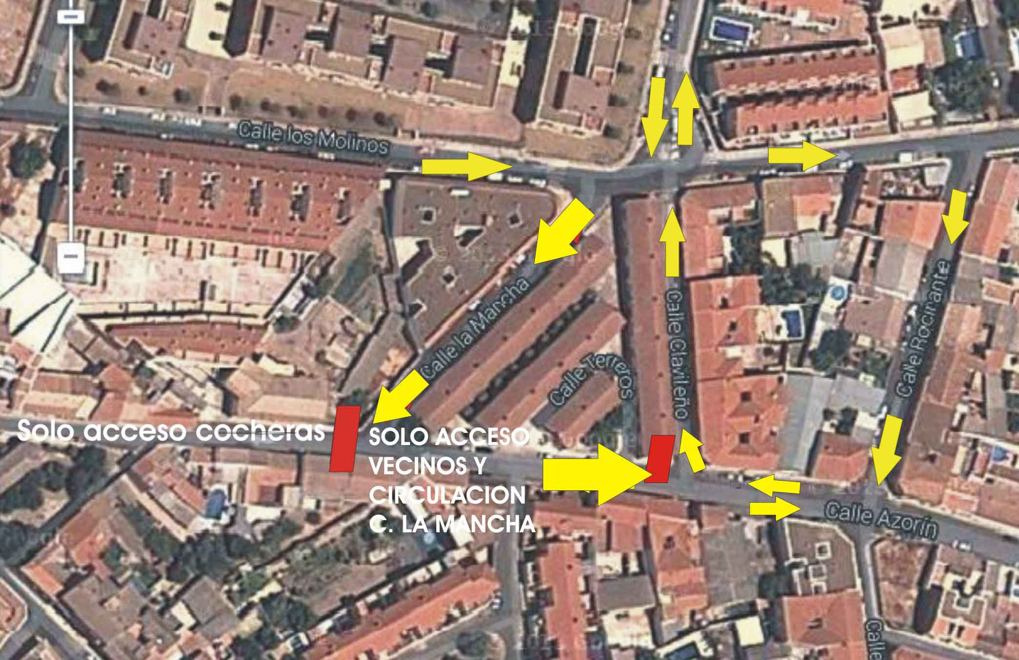 Como itinerario alternativo de salida desde calle Azorín, la calle Clavileño, cuyo sentido circulatorio no se alterará, quedará como mejor opción para circular hacia la zona Oeste de la localidad desde esta área.