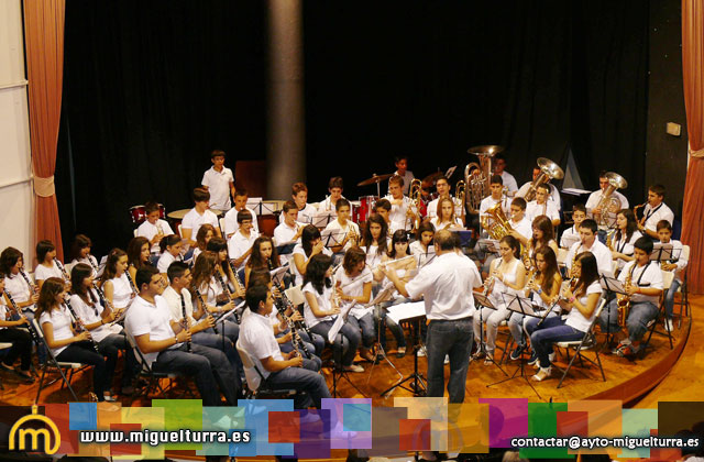 Posteriormente, fue el turno para los miembros de la Banda Sinfónica Juvenil de Miguelturra que tocaron los siguientes temas: "Educandos de Benejuzar" de J. Aparicio, "King Valley Overture" de J. Evans, "Apacehe Warrior" de N. Ward y "Tijuana trumpets" de P. Sparke.
