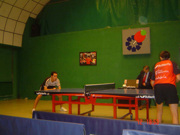 Marcos empezó jugando un tenis de mucha altura y ganando con suma facilidad, desbordando al jugador andaluz en los dos primeros set con su buen tops pins de derecha, para después perder los dos siguientes queriendo hacer un juego distinto como el tops de revés, dejándole entrar en el partido donde el jugador andaluz era muy peligroso por su juego de revés encima de la mesa y sus constantes bloqueos, en el último set y con la lección aprendida volvió a jugar sus armas mas importantes, su saque con mucho efecto y la entrada de derecha hasta hacer el punto ganando el quinto set cómodamente.