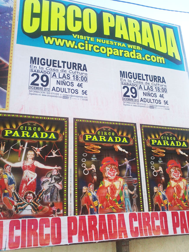 El sábado 29 de diciembre a partir de las 18 horas el Circo Parada realizará una nueva actuación en Miguelturra, concretamente en la Casa de Cultura, con entrada a 5 euros para adultos y 4 euros para niños y niñas, como parte de la programación del Área de Cultura del consistorio en esta época de navidad.
