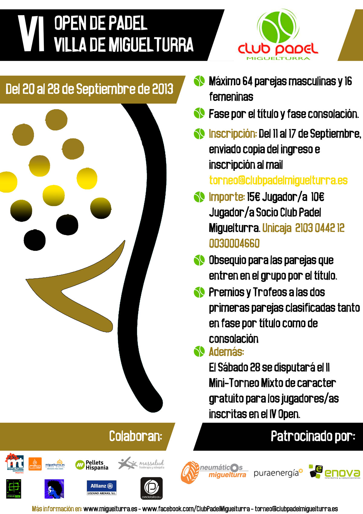 El Club de Pádel de Miguelturra ha dado a conocer el cuadro de los ganadores del Sexto Open de Pádel Villa de Miguelturra, que se celebró del 20 al 28 y que se incluía en la programación de Fiestas que lanzó la Concejalía de Deportes del ayuntamiento de Miguelturra.
