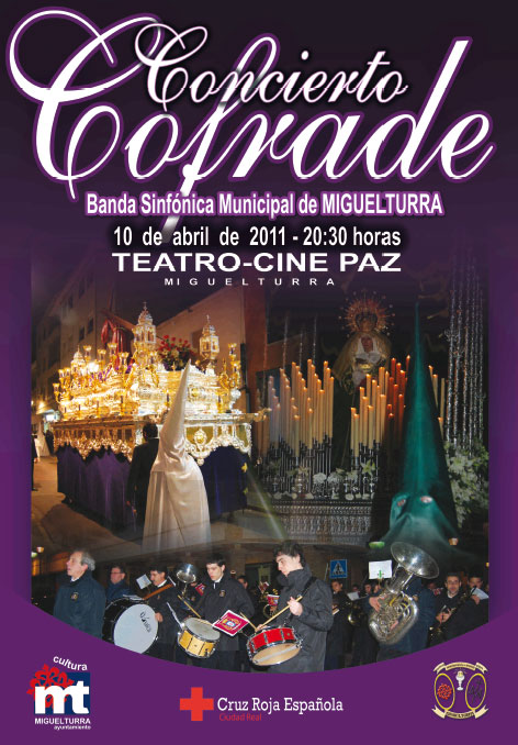 La Banda Sinfónica Municipal de Miguelturra desarrollará un Concierto Cofrade a favor de las personas damnificadas en el desastre de Japón concierto organizado por el Área de Cultura en colaboración con Cruz Roja Española y la Asociación de Hermandades de Semana Santa local.
