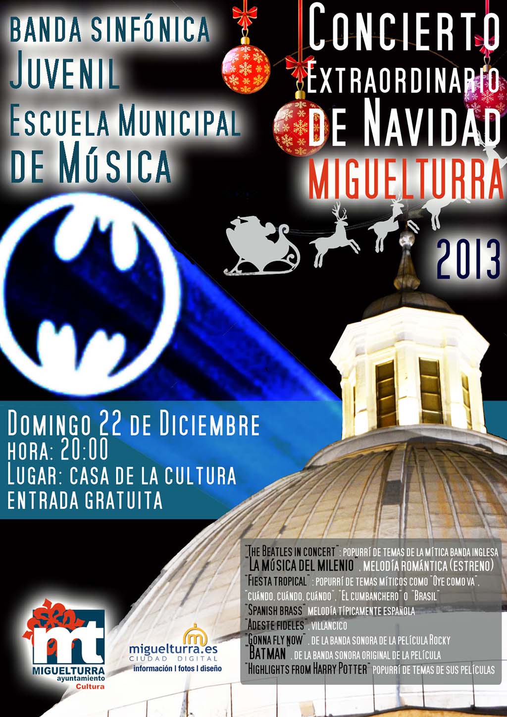 El domingo 22 de diciembre es la fecha en la que la Banda Sinfónica Juvenil de la Escuela de Música de Miguelturra, dependiente del Área de Cultura, desarrollará su ya tradicional Concierto Extraordinario de Navidad, a partir de las 20 horas en la Casa de Cultura con entrada gratuita hasta completar aforo, concierto en el que colabora este portal.