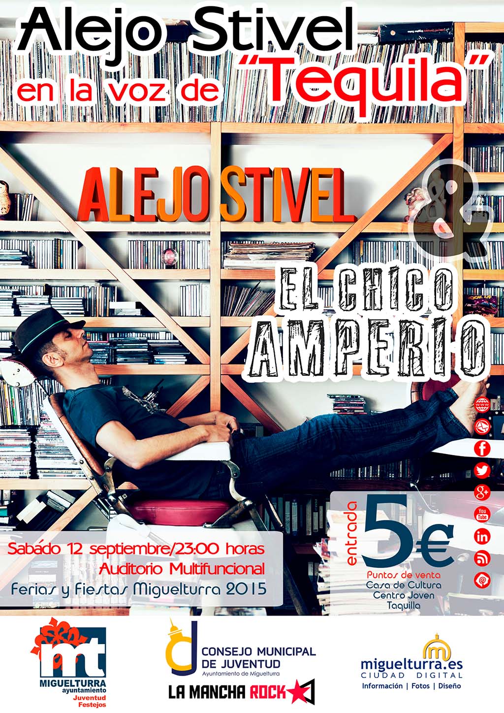 Las Concejalías de Festejos y Juventud, en colaboración con Consejo Municipal de Juventud, La Mancha Rock y portal web www.miguelturra.es, organizan el gran concierto de Alejo Stive, excomponente del mítico grupo Tequila, el sábado 12 de septiembre a partir de las 23 horas en el Auditorio Multifuncional, y en el que "El Chico Amperio" actuará de grupo telonero.