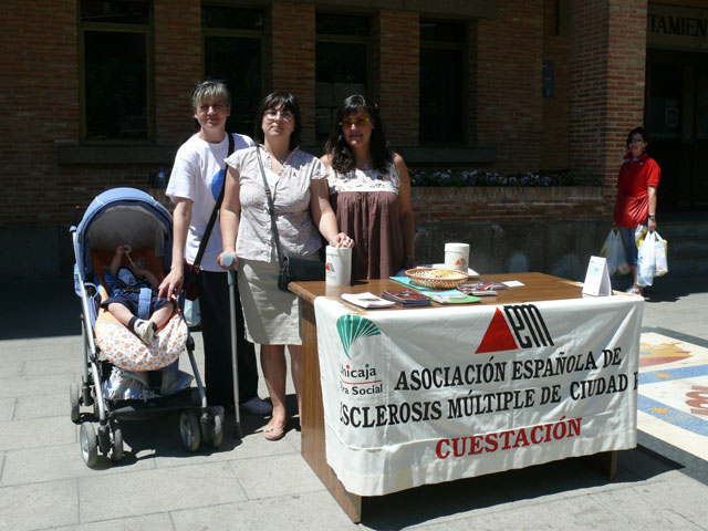 En la mañana del miércoles la Asociación de Esclerosis Múltiple de Ciudad Real instalaba una mesa petitoria en la céntrica Plaza de España de Miguelturra. El motivo era la celebración del Día Mundial de la Esclerosis Múltiple.