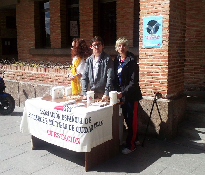 Miembros de la delegación ciudadrealeña de la Asociación Española de Esclerosis Múltiple, acompañados por voluntarios locales, están realizando durante la mañana de este miércoles 29 de mayo una cuestación a las puertas del Ayuntamiento de Miguelturra. Además de pedir la aportación económica de los numerosos miguelturreños que se acerquen a colaborar, a los vecinos se les explicarán los aspectos del trabajo que lleva a cabo la asociación así como detalles de la propia enfermedad.