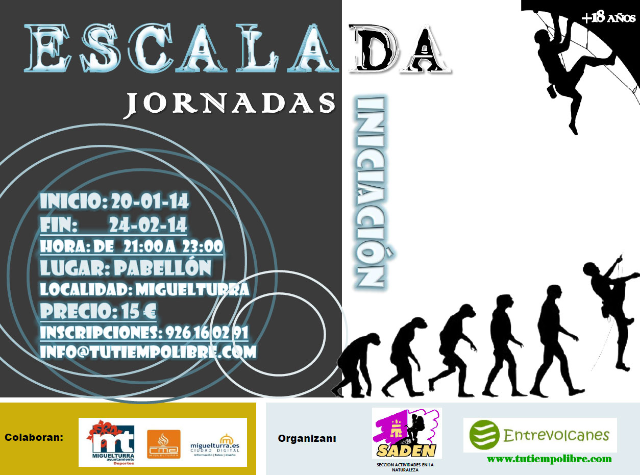 La Concejalía de Deportes de Miguelturra anuncia un nuevo curso de escalada en el rocódromo del Pabellón Municipal organizado por el club deportivo miguelturreño Saden y a Entrevolcanes denominado "Jornadas de iniciación a la escalada".
