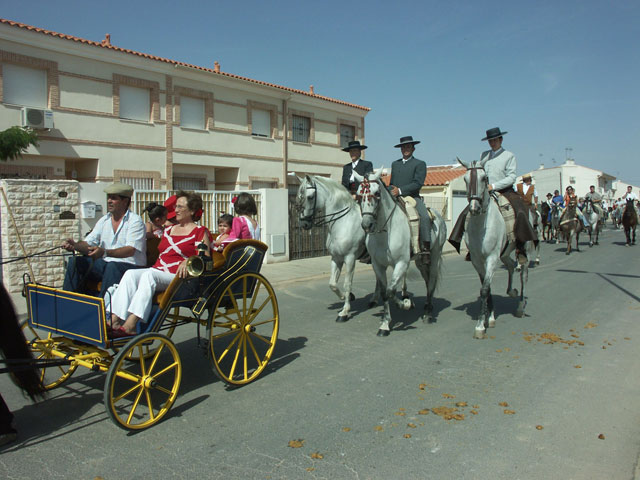 Los carros iban engalanados y los jinetes y sus acompañantes con el traje de paseo e incluso algunas mujeres con bata de cola alegraba la vista de quienes se encontraban a su paso.