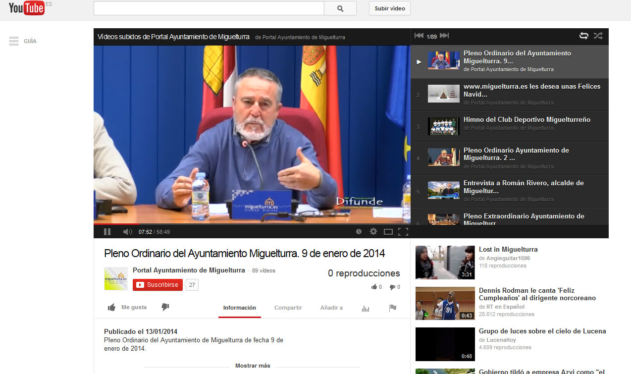 La Redacción del portal web del Ayuntamiento de Miguelturra acaba de "subir" hoy lunes 13 de enero de 2014 el vídeo íntegro del Pleno Ordinario del Ayuntamiento de Miguelturra de fecha 9 de enero.
