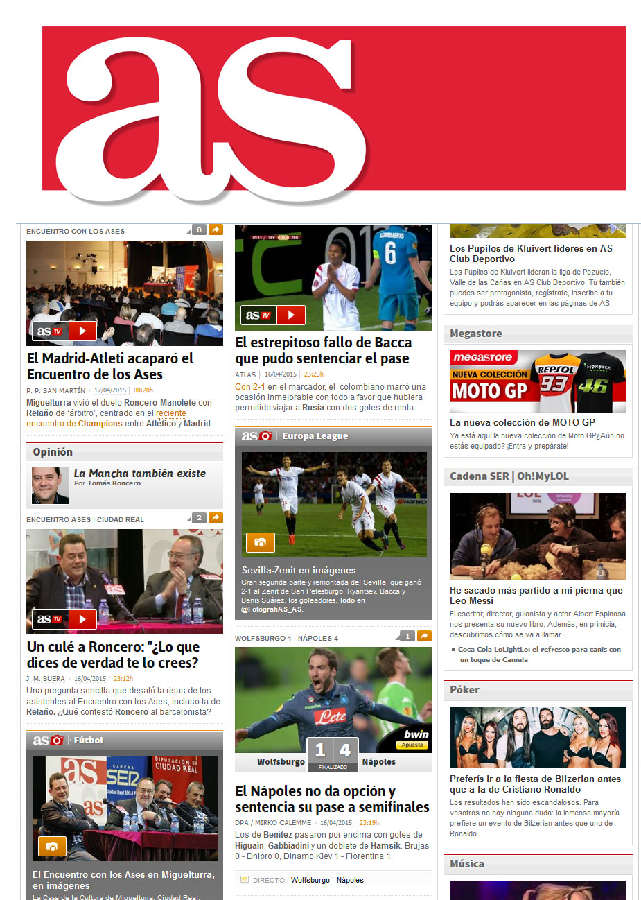 Hoy viernes la portada digital de AS viene cargada con varias noticias del desarrollo del evento deportivo, vídeos e imágenes, información que hemos canalizado a través de nuestras redes sociales institucionales y que si desean consultarlas las tienen en el diario digital o en nuestros canales de Facebook, Twitter o GooglePlus.