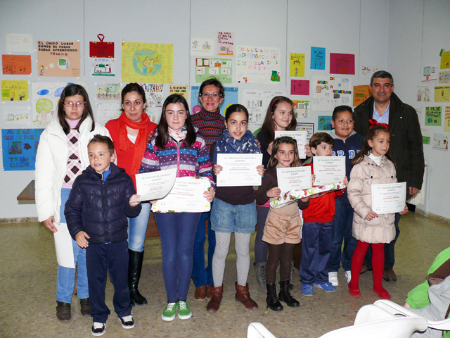 Esta actividad consistía en incentivar a los ganadores de un concurso que pretendía desarrollar la creatividad de los niños de educación primaria a través de carteles y slogans que representasen las ventajas de asistir al colegio. Unos carteles y eslóganes que están expuestos en el salón de usos múltiples del ayuntamiento de la localidad y cuyos ganadores han recibido un diploma y material escolar de premio.