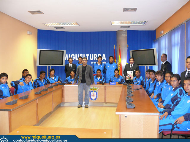 El equipo mexicano Cruz Azul ha visitado el Ayuntamiento de Miguelturra, localidad en la que ha entrenado y ha jugado un amistoso. Tras dar las gracias al Presidente de la Junta de Comunidades de Castilla La Mancha, José María Barreda, y a Manolo Sanchís, Presidente de DEPORGADYD, empresa organizadora del Mundial Sub-17, por la acogida y el magnífico trato que han recibido, Miguel Ángel Casillas, ha explicado que el equipo surge de un núcleo empresarial, la Cooperativa Cruz Azul, cuya principal actividad es el cemento.