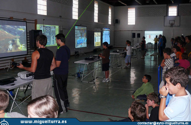 Dentro de las actividades organizadas para los más jóvenes en estas ferias y fiestas de Miguelturra, ayer fue en el gimnasio del instituto donde se realizó una exhibición de consolas con pantallas gigantes (tres consolas de PlayStation, dos de Wii y otras dos consolas de Xbox 360, con efectos especiales como láser sonido, humo, y luces para "Rok ban" y "Guitar Heroes").