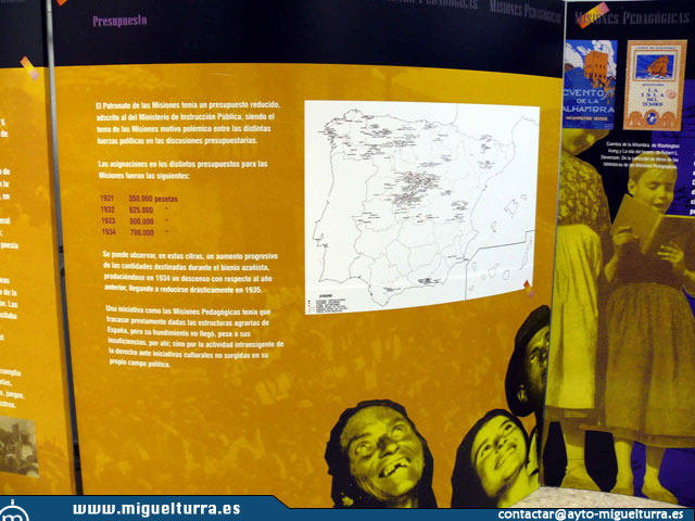 La exposición está basada en diferentes paneles y carteles en donde explica la proclamación de la Segunda República tras la derrota electoral de los partidos monárquicos en las elecciones municipales del 14 de abril de 1931. Según las propias palabras del tríptico de la exposición la Segunda República "significó el comienzo de una etapa intensa, pero desgraciadamente breve, en la mejora del nivel de educación y de acceso a la cultura de la población española. Fue bautizada como "la República de los Intelectuales" o "la República de las Artes y las Letras".