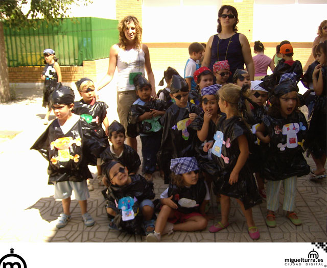El pasado jueves 20 de julio, los niños y niñas que participan en el Aula de Verano de Miguelturra 2006, organizado por el Área de Bienestar Social del Ayuntamiento, celebraron una fiesta de disfraces con los trajes que ellos mismo habían confeccionado el día anterior, siendo el disfraz elegido el de pirata.