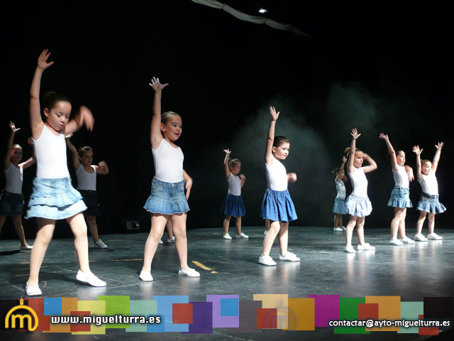 Un total de 64 participantes, de los más de 70 que han realizado el curso, distribuidos en tres partes y que fueron subiendo al escenario para interpretar las diferentes coreografías dirigidas por Rocío Gracia y Antonio Blanco.