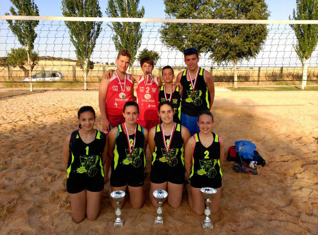 El pasado sábado tuvo lugar en Playas del Vicario (Ciudad Real) el Campeonato Regional de Vóley Playa en categoría cadete masculino y femenino clasificatorio para el Campeonato de España y para el que habían conseguido plaza previamente dos parejas miguelturreñas masculinas y dos femeninas. Un oro y dos platas fue el balance para las Escuelas Deportivas de Miguelturra superando todos los registros.