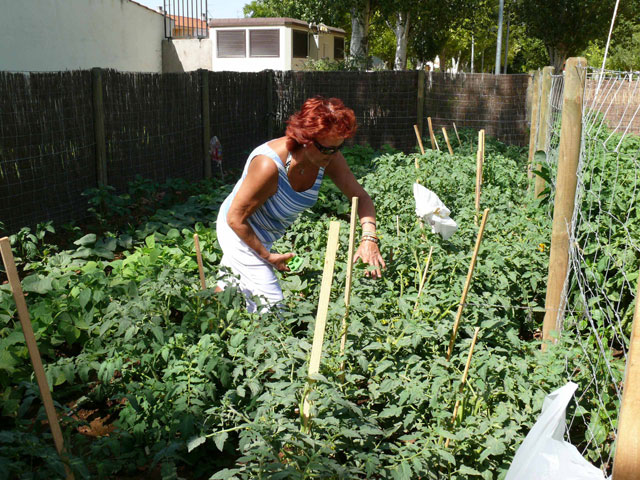 Los cuatro usuarios responsables de las parcelas dicen que por la tarde siempre están acompañados de niños y padres preguntando y satisfaciendo la curiosidad que les despierta. Pero además, son invitados a merendar, muchas tardes pelan pepinos y los reparten con sal.