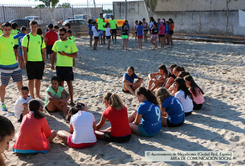 Pasadas las 9 de la mañana abría sus puestas el Tercer Clínic de Vóley Playa de Miguelturra con cerca de 100 participantes chicas y chicos que han sido distribuidos en diferentes grupos dependiendo de sus categorías con dos monitores por cada grupo.