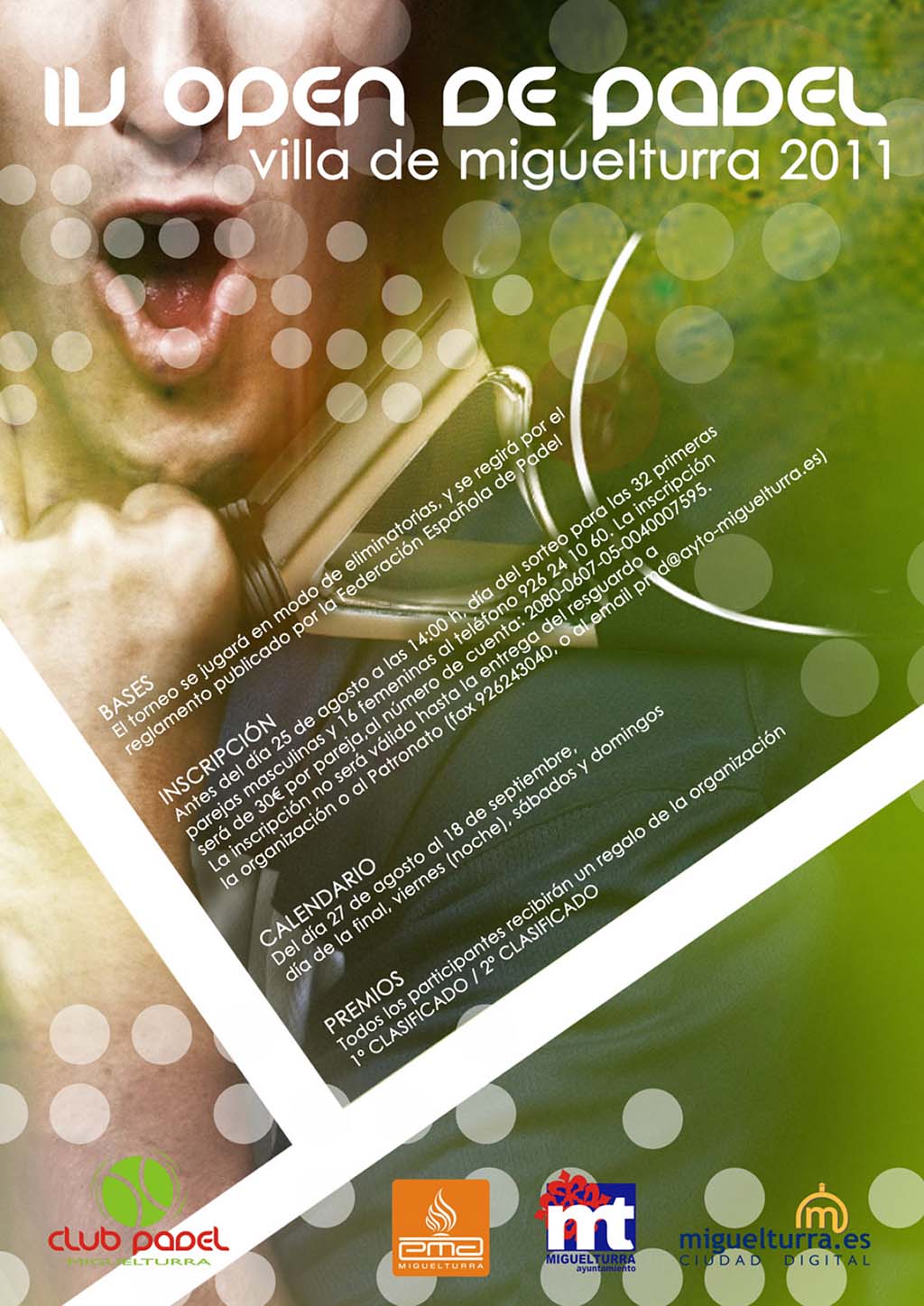 El Club de Padel de Miguelturra, en colaboración con el Patronato Municipal de Deportes, organiza el IV Open de Padel Villa de Miguelturra 2011, que se disputará del 27 de agosto al 18 de septiembre en el Complejo Deportivo Candelario León Rivas de la localidad.