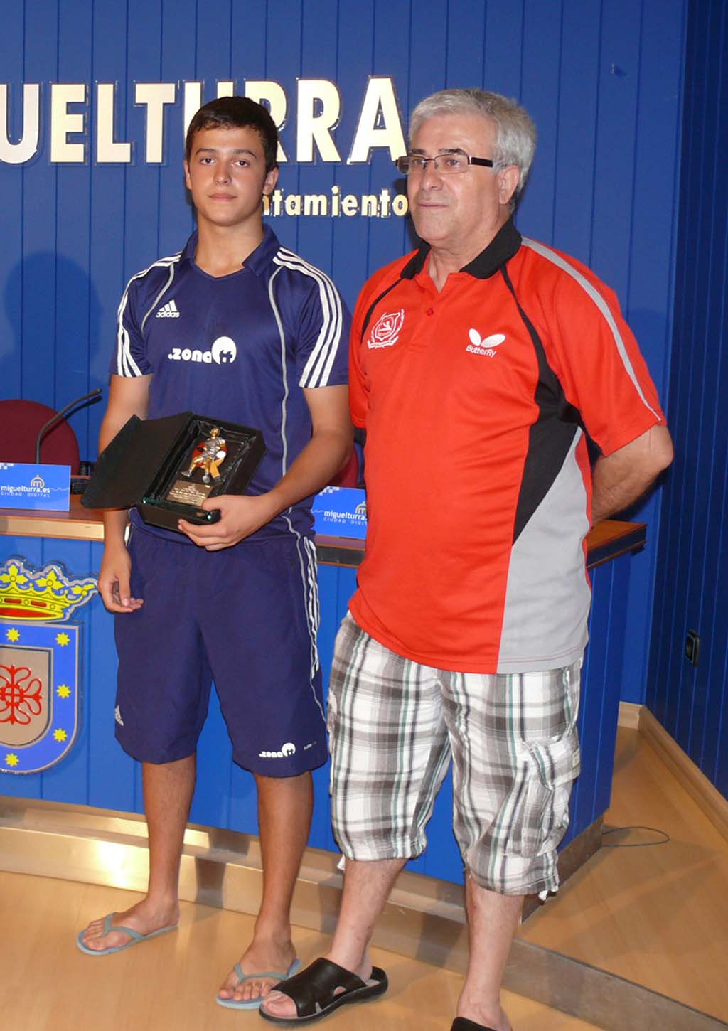 Los jugadores miguelturreños Javier Benito, del Club Tenis de Mesa Rivas, que recientemente se ha proclamado campeón juvenil de España, en el torneo estatal celebrado en Valladolid, y Sofía Barba, del Club Tenis de Mesa de Avilés, que en el mismo escenario fue medalla de bronce en categoría juvenil femenina y Jaime Vidal, del Club Tenis de Mesa del Lekanea de Irún, participan en el campeonato de España de Tenis de Mesa, que se inicia este fin de semana el Recinto Ferial de Pontevedra.