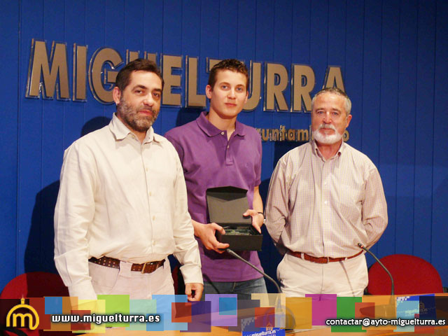 El Alcalde de Miguelturra, Román Rivero, y el concejal de la localidad, Manuel Viso, han querido recibir de manera oficial al deportista miguelturreño Javier Rivas que, con tan sólo quince años, se ha traído a casa la medalla de bronce y la plata de los campeonatos infantiles de España en natación.