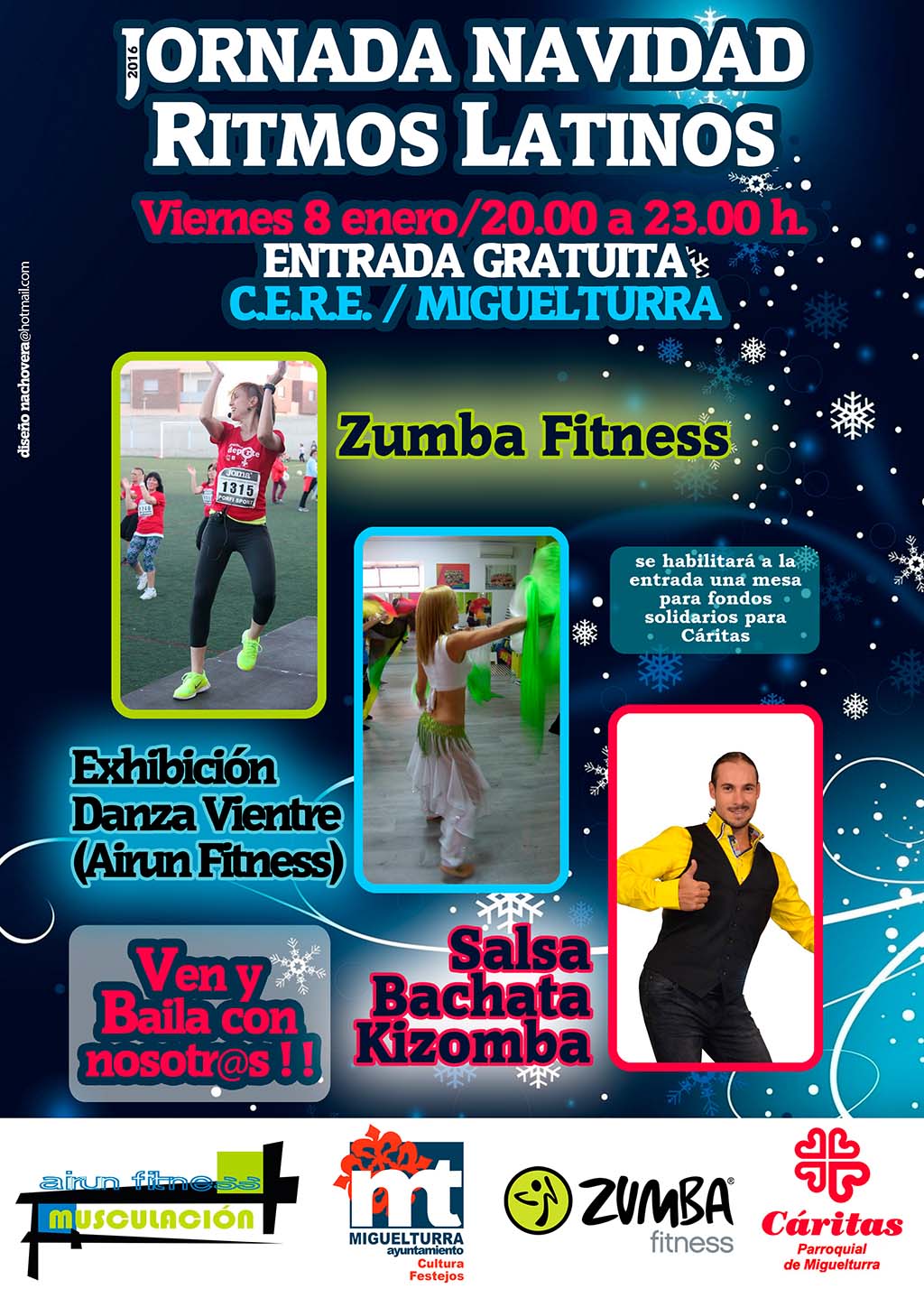 Dentro de la Programación de Navidad del Ayuntamiento de Miguelturra, que va desde el 3 de diciembre al 9 de enero de 2016, el viernes 8 de enero de 2016 se desarrollará en el CERE la Jornada de Navidad de Bailes Latinos, a partir de las 20:00 horas, organizado por el Gimnasio Municipal de Airun Musculación, Airun Fitness, Zumba Fitness y Concejalías de Cultura y Festejos.