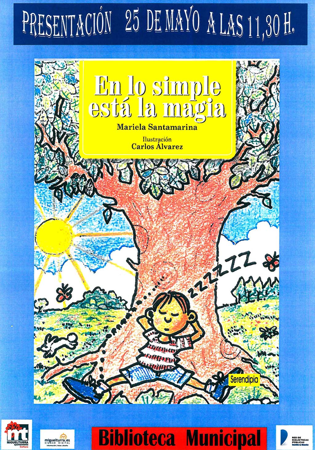 La Biblioteca Municipal de Miguelturra presentará, el próximo miércoles 25 de mayo a las 11:30 horas el libro titulado "En lo simple está la magia" de Mariela Santamaría con ilustraciones de Carlos Álvarez. Una actividad concertada ya con colegios de la localidad.