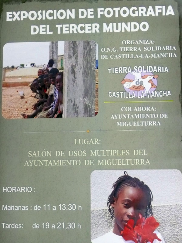 El Salón de Usos Múltiples del Ayuntamiento de Miguelturra acoge hasta el 30 de junio una exposición fotográfica sobre el tercer mundo organizada por la O. N. G. local -Tierra Solidaria de Castilla La Mancha- en colaboración con el Consistorio.