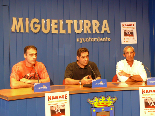La céntrica Plaza de la Constitución de Miguelturra acogerá el próximo sábado, 12 de septiembre la concentración de la Selección Regional de Kárate. El acto era presentado en el Salón de Plenos del Ayuntamiento y contó con la asistencia del concejal de Deportes del Consistorio, Manuel Viso, el presidente de la Federación de Kárate de Castilla la Mancha, Miguel Ángel Becerro y, el presidente del Club Deportivo Shotokán de Miguelturra, Rafael Arenas.