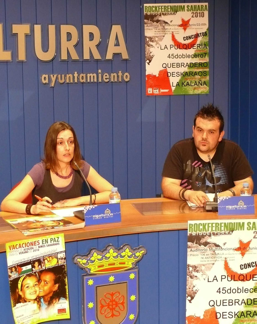 La concejala de Juventud y Cooperación Internacional, Ana Belén Rivas, acompañado por José Luis Rodríguez, presidente de la asociación local de ayuda al pueblo saharaui "SAYMI", presentaba en la mañana del martes el Noveno Festival Benéfico "Rockferendum Sahara 2010".