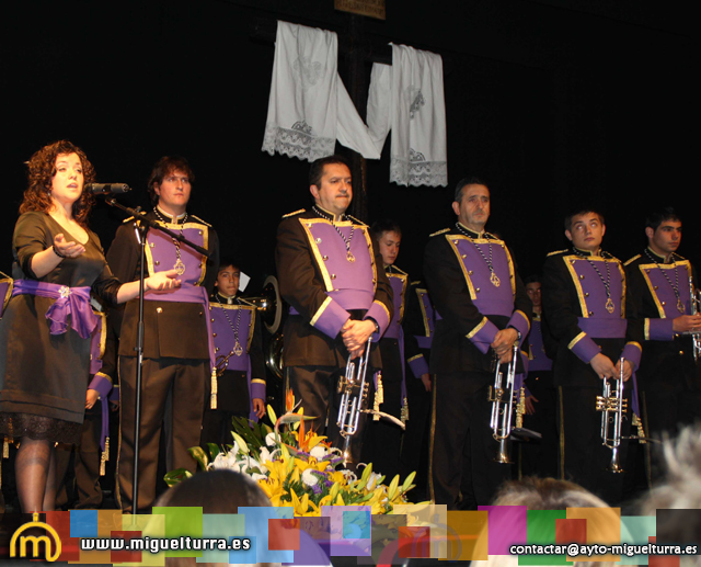 En esta ocasión, el acto, presentado por María Teresa Rodado Nieto, contó con la interpretación de la saetera Laura García. Sus emotivas saetas fueron intercalándose con las marchas que interpretaron los componentes de la Agrupación Musical "Santísimo Cristo de la Piedad".