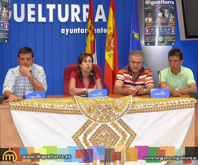 La concejala de Cultura del ayuntamiento de Miguelturra, Esmeralda Muñoz, acompañada por José Antonio Galdón "el niño Belén" empresario taurino y responsable de la empresa Taurobesol, Aníbal Ruiz, torero y Francisco Molina presidente de la Peña Taurina "Capote de Oro", han presentado en rueda de prensa el "Festival Taurino" que se celebrará en Miguelturra el día 9 de septiembre a las 18:00 horas con motivo de las fiestas patronales de la localidad en Honor a la Virgen de la Estrella.